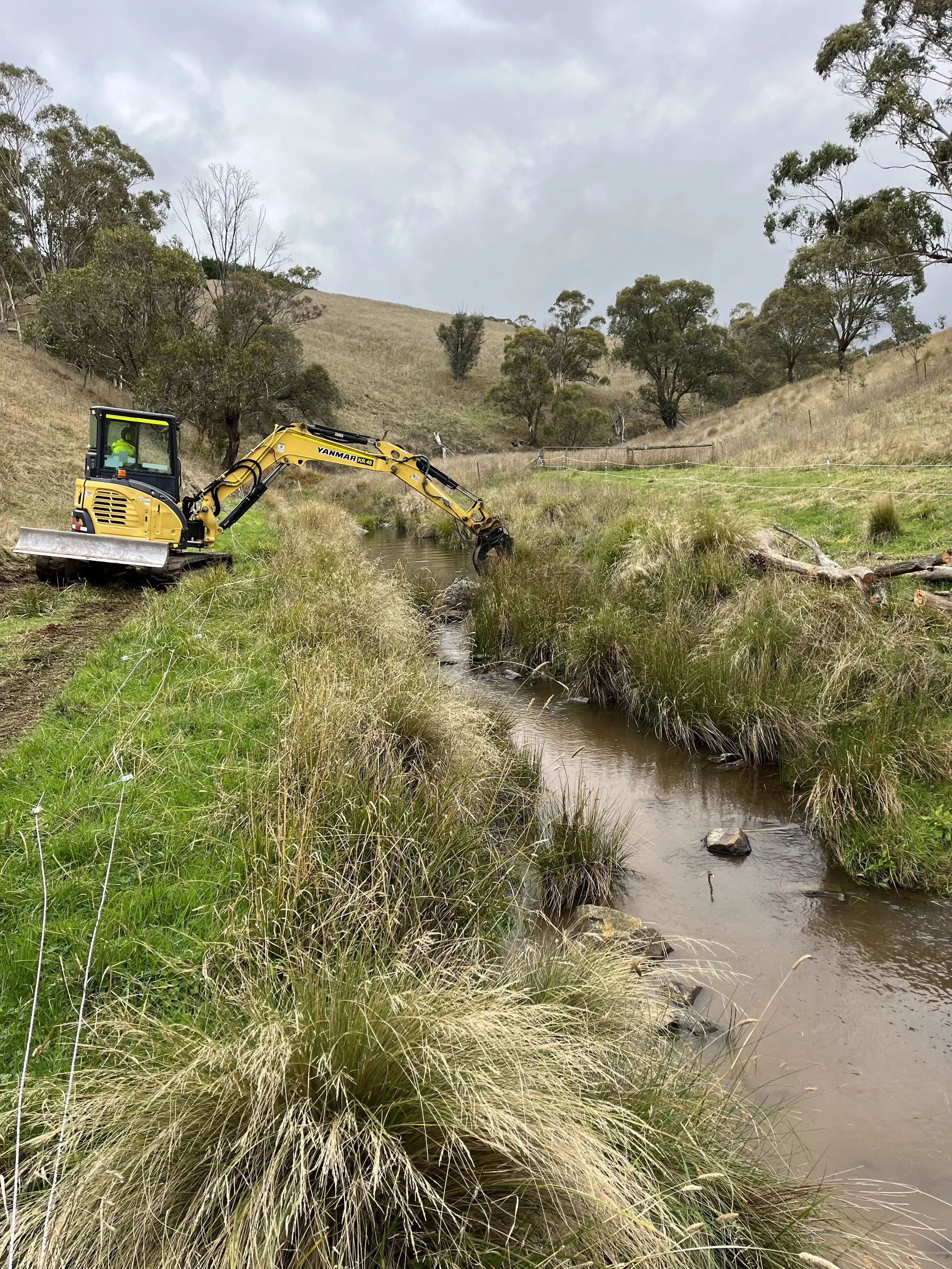 Using natural sequence farming methods, we can assist you to design and implement changes to your farm or rural property to restore ecological function, avoid erosive damage, improve nutrient and sediment deposition and maximise water soakage. Ultimately, these measures can improve the health and resilience of your landscape and sustainably increase productivity.